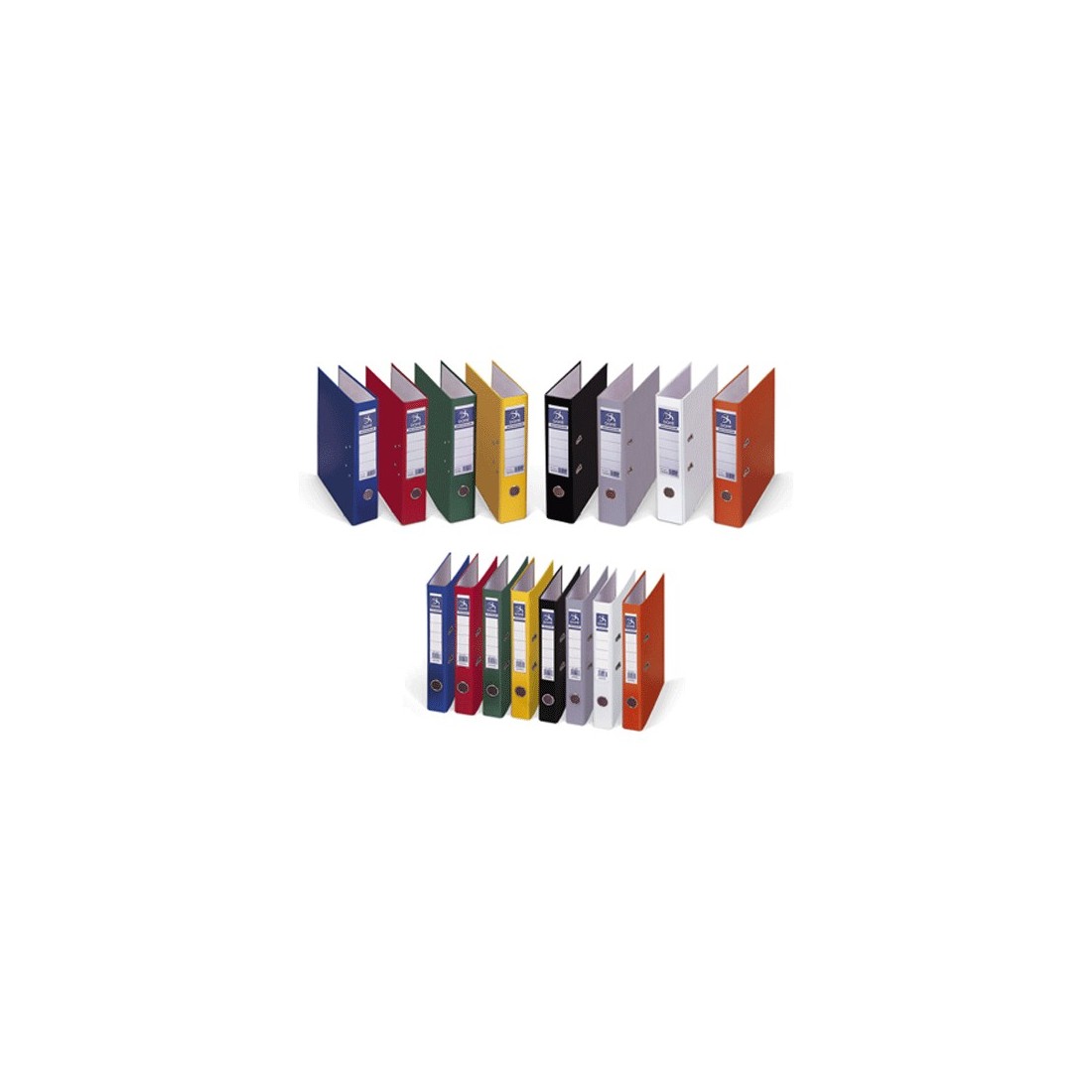 Archivador en cartón forrado con polipropileno, de diseño liso, disponibles en varios lomos y colores.